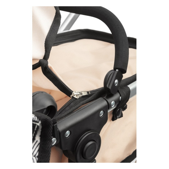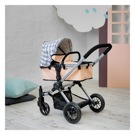 Gå ut på en härlig promenad med denna trendiga och exklusiva kombivagn. Vagnen är väldigt lättkörd tack vare de snurrbara framhjulen.