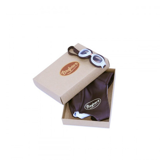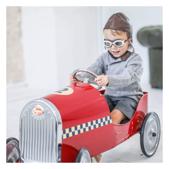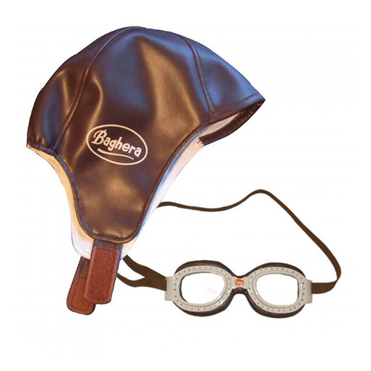 Häftigt racing kit för den fartfyllda färden på en Baghera sparkbil. Mössa med mjuk insida och kardborreband för bra passform. Glasögonen har en elastisk rem som gör att de passar barnet.