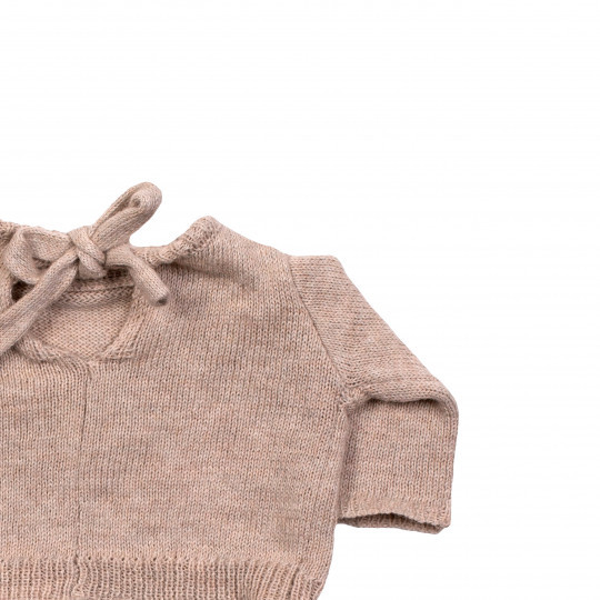 Vintersetet för Rubens EcoBuds-dockan innehåller en beige stickad tröja samt en mysig stickad tubhalsduk.