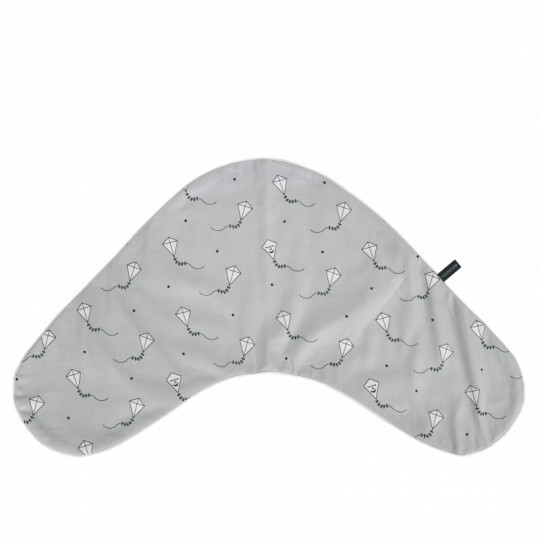 Ett ekologiskt överdrag till en amningskudde, med ett sött mönster av glada drakar som flyger hit och dit - svart mönster på en ljusgrå bakgrund med enstaka vita klickar. . ". . . . . .