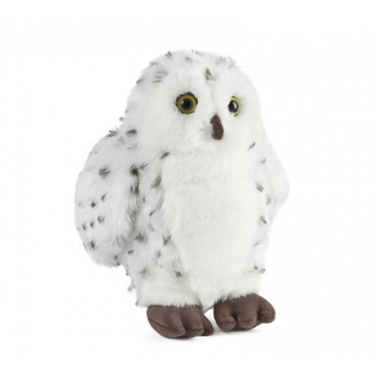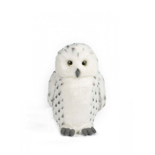 Ännu en fjälluggla med sin bestämda look. Med vit och mörkmönstrad fjäderskrud smälter fågel väl in i snöiga landskap. Med skarpa ögon och bestämd näbb ser gosedjuret väldigt naturtroget ut. Bör ej dela säng med de allra yngsta. . . Storlek: 30 cm