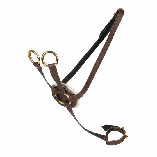 Martingal i brunt konstläder, tillbehör till Cheval Roi´s käpphästar.