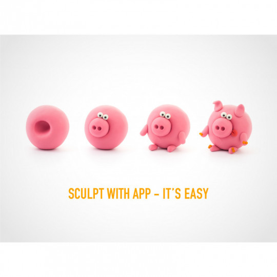 Innehåll: 5 burkar lufttorkande lera (totalt ca 75 g lera i 5 färger) samt ett informationsblad med bilder på djuret, de olika stegen som krävs för att skulptera djuret, en länk till där ni kan hämta appen och koden som låser upp appens guide för hur man skapar grisen.