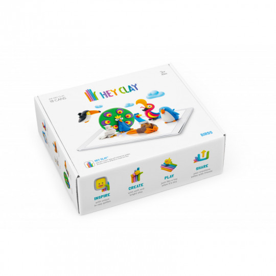 Ett riktigt kul och kreativt set med lufttorkande lera att skapa 6 olika fåglar av som du sen kan leka med eller dela bilder av med dina vänner. Detta set innehåller material för att kunna skapa: en duva, en pingvin, en papegoja, en påfågel, en fasan och en tucan. Setet innehåller 18 burkar lätt, mjuk, elastisk och färggrann lera som kan ta form med hjälp av en gratis barnvänlig app med interaktiva video-guider som har enkla steg-för-steg instruktioner (på engelska) för hur man skulpterar många olika karaktärer. Du låser upp beskrivningarna för setets alla karaktärer med en kod som finns inuti paketet. Låt dig inspireras av appen och skapa roliga karaktärer av den mjuka och färgstarka leran, låt figurerna lufttorka i 24 timmar så kan du sen leka med dem precis som en leksak eller dela bilder på dina skapelser med dina vänner. Guiden med steg-för-steg instruktionerna visar alla grundläggande tekniker för att skulptera i lera och snart kommer barnen längta efter att skapa sina helt egna figurer. Leran är lufttorkande, klibb-fri, giftfri, innehåller inget vete och har klara, livfulla färger som går att blanda ihop. Tvätta händerna efter användning och undvik att leran får kontakt med mun, ögon, mat eller dryck, vatten, fukt samt eld. Ha leran i lufttäta förpackningar när den inte används så torkar den inte ut.