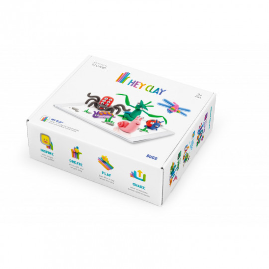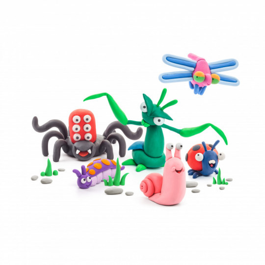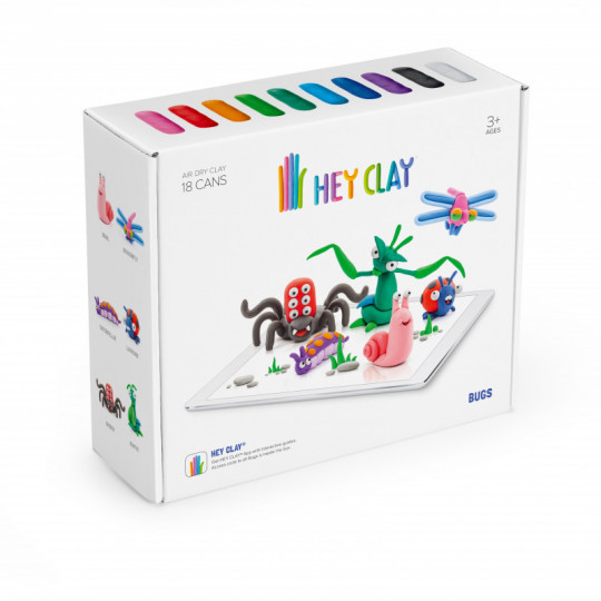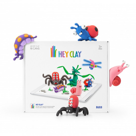 Innehåll: 18 burkar lufttorkande lera (totalt ca 275 g lera i 10 färger) samt ett informationsblad med bilder på alla småkrypen, en länk till där ni kan hämta appen och koden som låser upp appens guider för hur man skapar alla insekterna.