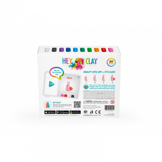 Ett riktigt kul och kreativt set med lufttorkande lera att skapa 6 olika bondgårds djur av som du sen kan leka med eller dela bilder av med dina vänner. Detta set innehåller material för att kunna skapa: en snigel, en nyckelpiga, en trollslända, en larv, en bönsyrsa och en spindel. Setet innehåller 18 burkar lätt, mjuk, elastisk och färggrann lera som kan ta form med hjälp av en gratis barnvänlig app med interaktiva video-guider som har enkla steg-för-steg instruktioner (på engelska) för hur man skulpterar många olika karaktärer. Du låser upp beskrivningarna för setets alla karaktärer med en kod som finns inuti paketet. Låt dig inspireras av appen och skapa roliga karaktärer av den mjuka och färgstarka leran, låt figurerna lufttorka i 24 timmar så kan du sen leka med dem precis som en leksak eller dela bilder på dina skapelser med dina vänner. Guiden med steg-för-steg instruktionerna visar alla grundläggande tekniker för att skulptera i lera och snart kommer barnen längta efter att skapa sina helt egna figurer. Leran är lufttorkande, klibb-fri, giftfri, innehåller inget vete och har klara, livfulla färger som går att blanda ihop. Tvätta händerna efter användning och undvik att leran får kontakt med mun, ögon, mat eller dryck, vatten, fukt samt eld. Ha leran i lufttäta förpackningar när den inte används så torkar den inte ut.