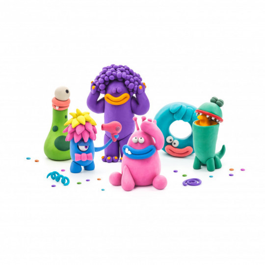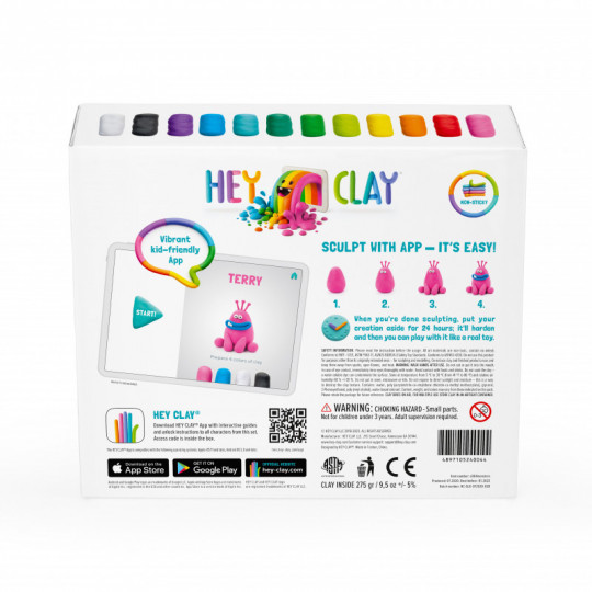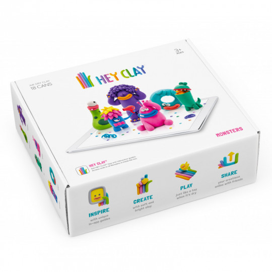 Ett riktigt kul och kreativt set med lufttorkande lera att skapa 6 olika roliga monster av som du sen kan leka med eller dela bilder av med dina vänner. Detta set innehåller material för att kunna skapa monstren: Bigwig, Cyclop, Donut, Hipster, Pi och Terry. Setet innehåller 18 burkar lätt, mjuk, elastisk och färggrann lera som kan ta form med hjälp av en gratis barnvänlig app med interaktiva video-guider som har enkla steg-för-steg instruktioner (på engelska) för hur man skulpterar många olika karaktärer. Du låser upp beskrivningarna för setets alla karaktärer med en kod som finns inuti paketet. Låt dig inspireras av appen och skapa roliga karaktärer av den mjuka och färgstarka leran, låt figurerna lufttorka i 24 timmar så kan du sen leka med dem precis som en leksak eller dela bilder på dina skapelser med dina vänner. Guiden med steg-för-steg instruktionerna visar alla grundläggande tekniker för att skulptera i lera och snart kommer barnen längta efter att skapa sina helt egna figurer. Leran är lufttorkande, klibb-fri, giftfri, innehåller inget vete och har klara, livfulla färger som går att blanda ihop. Tvätta händerna efter användning och undvik att leran får kontakt med mun, ögon, mat eller dryck, vatten, fukt samt eld. Ha leran i lufttäta förpackningar när den inte används så torkar den inte ut.