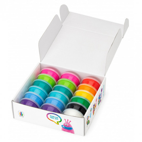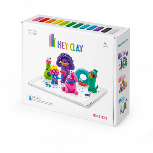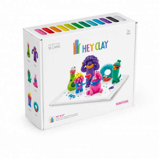 Innehåll: 18 burkar lufttorkande lera (totalt ca 275 g lera i 12 färger) samt ett informationsblad med bilder på alla monstren, en länk till där ni kan hämta appen och koden som låser upp appens guider för hur man skapar alla monstren i setet.