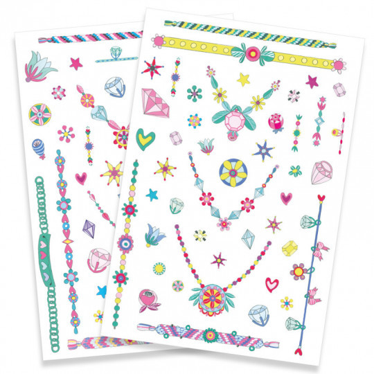Fina tatueringar som är dermatologiskt testade. Tema Jenni's juveler med metalliceffekter. Förpackningen innehåller 2 ark med fina tatueringar. . . Förpackningsstorlek.