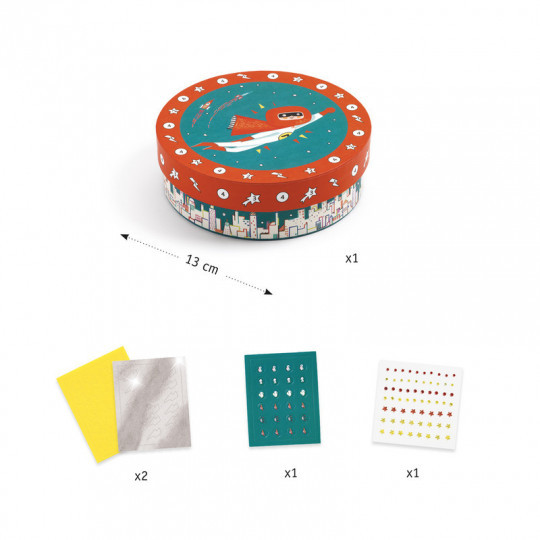 Trevlig rund ask med superhjältemotiv att dekorera med självhäftande mosaik och pärlor. Förpackningen innehåller. . . . .