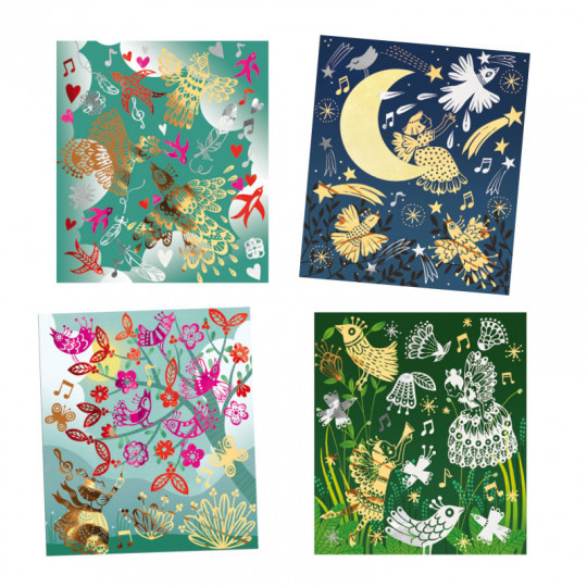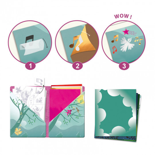 Trevligt dekorationspyssel för de kreativa. Med cool metalliceffekt och musikmotiv. Först klistrar du fast det genomskinliga klistermärket som är \klistrigt\""" på båda sidorna, över den lägger du sedan dekorationspappret som fastnar i klistret. Resten lyfter du bort för att använda på andra märken. Kan användas för att dekorera kort, dagböcker etc. """