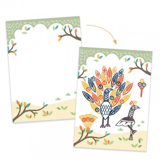 Ett kul set med stämpelpyssel med djur som tema och som låter dig sätta ihop dina egna djur genom att kombinera olika stämplar och färger. Ha kul medan du prövar olika kombinationer och placeringar av former samt färger och låt din fantasi få fritt spelrum. Scenerna på korten kommer till liv med något nytt varje gång. Innehåll. .