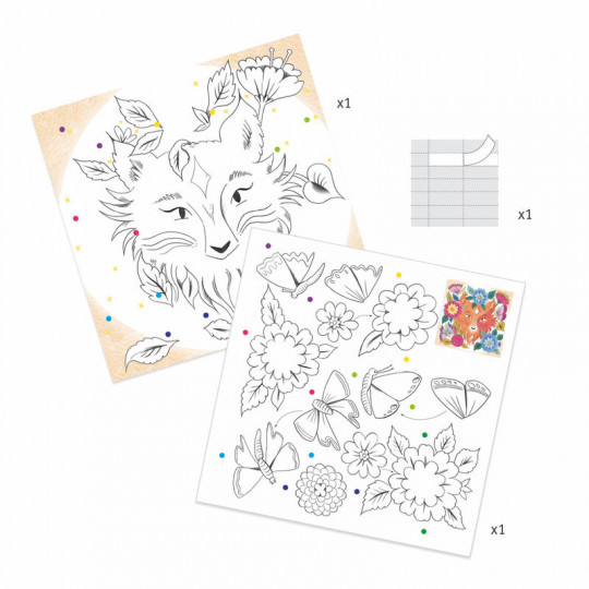 Fina och ovanliga motiv att färglägga och dekorera med spännande detaljer. Detta set har tredimensionella dekorationer att färglägga och sätta dit i flera lager - för en extra dekorativ effekt. Motiv från skogen och dess invånare. Storlek på bilderna. .