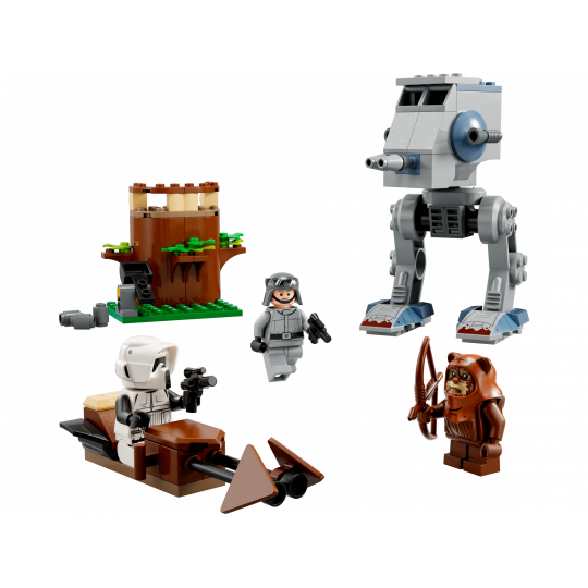 Hjälp den modige ewoken Wicket att försvara sig mot spaningssoldaterna! Bygg en utkiksplats i Endors skogar och förbered dig för strid. Här kommer den mäktiga AT-ST trampande bland träden. Och se upp för spaningssoldaten som attackerar på en speeder. Använd Wickets båge och pil och katapult för att stoppa dem. Det här är en strid du måste vinna!