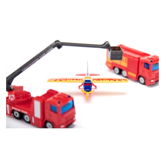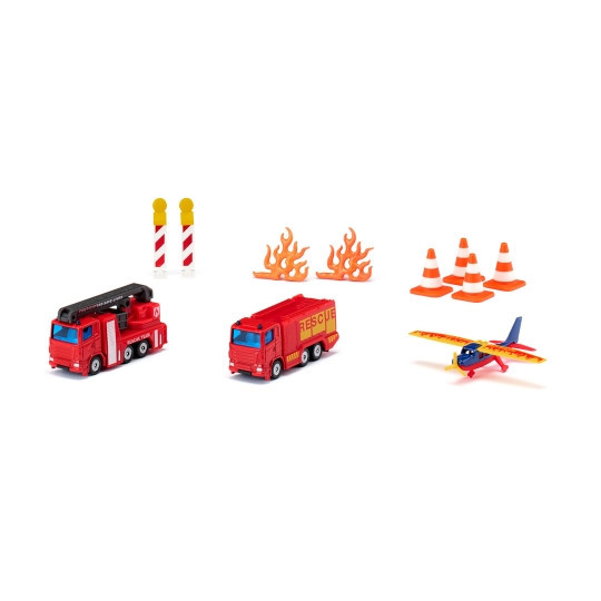 SIKU set med brandbilar och tillbehör. Med det här fantastiska paketet har du det mesta som krävs för att släcka branden. Setet innehåller två brandbilar och ett brandflyg samt tillbehör. Från 3 år.