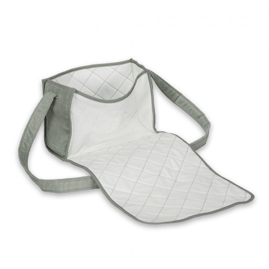 En skötväska är ett måste när du ska ut på promenad eller äventyr med din docka. Ta hand om din docka med dessa fina tillbehör, där väskan är packad med utvikbar skötbädd, tvättlapp, blöja och haklapp. En skötväska i mintgrön manchester.
