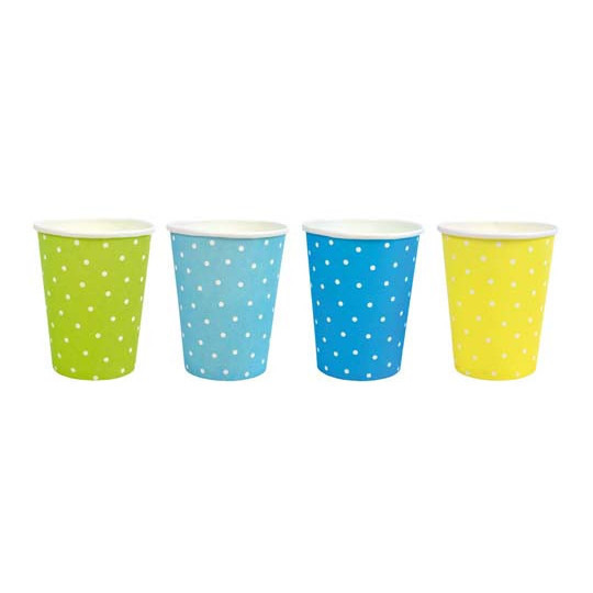 Festliga muggar, underbara att duka med på kalaset eller picknicken. 8 muggar/set i olika färger 9 cm