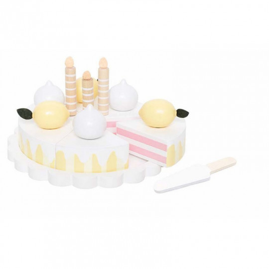 En klassisk citrontårta för barnen som älskar att bjuda på fika och leka cafÈ! Med färdigskurna tårtbitar är den både enkel och rolig för barnen att skära upp och dela ut på tallrikar. Innehåller 6 färdigskurna tårtbitar,3 citroner, 3 maränger och 3 tårtljus. Ett vitt fat samt en medföljande tårtspade ingår också. Mått: 19 ¯ cm 91 x 19 x 11 cm