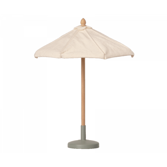 Riktigt soliga dagar behöver djuren från Maileg solskydd, då plockar dom fram det här fina parasollet. Parasollet står i en parasollfot tillverkad av metall. Mått Höjd 27,5 cm Diameter 19 cm