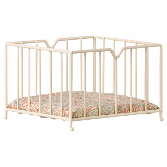 En lekhage för djuren från danska Maileg i storleken Micro. En bedårande lekhage tillverkad i metall med en mjuk madrass i botten, hagen håller även dom busigaste små djuren på samma ställe. Höjd 8cm
