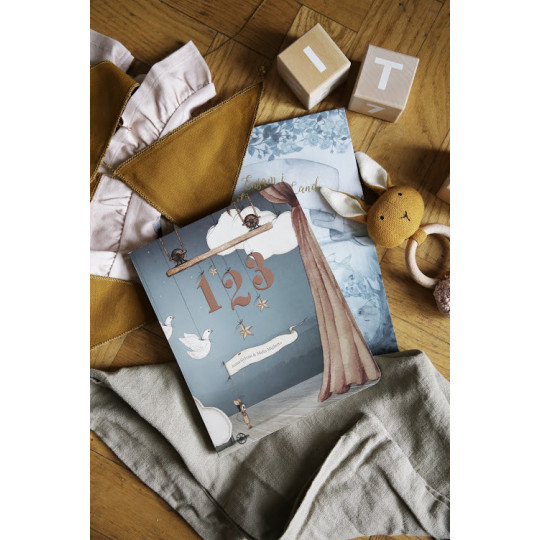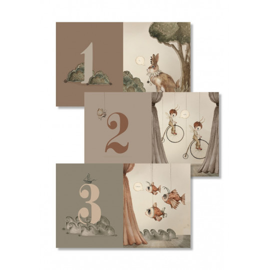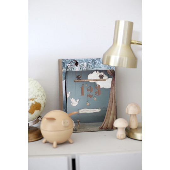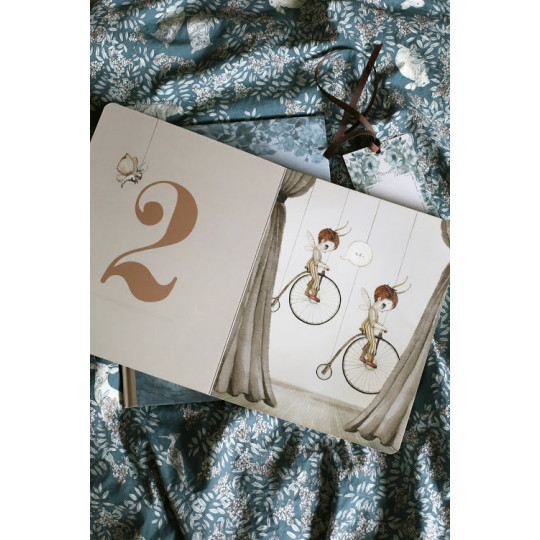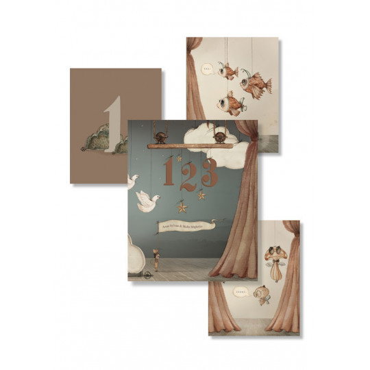 På kraftiga, tåliga sidor utspelar sig den lilla teatern på den scen vi känner igen från tidigare kollektion; My Tiny Theater med typiska karaktärer från Mrs Mighettos värld. Alla 24 sidorna har siffran skrivet och samma antal figurer på teaterscenen för att lära oss logiken i att räkna, känna igen siffror, lära känns dem samt utveckla och bygga sitt begynnande ordförråd.