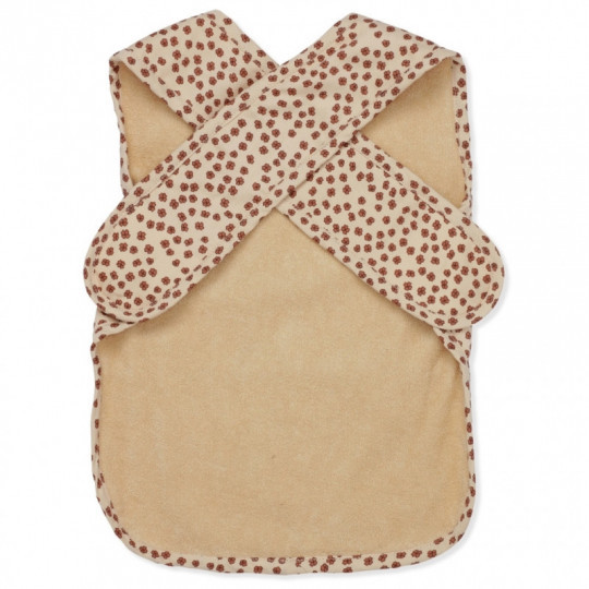 En lite större haklapp från danska Konges Slöjd tillverkad i 100% Ekologisk bomull. Lätt att torka av, haklappen sitter ordentligt med ett kors i ryggen, tas enkelt på och av genom att lossa kardborren. Längd 46cm Bredd 32cm
