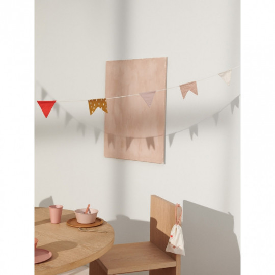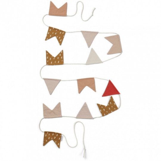 Det här fina flaggspelet från Liewood gör verkligen det där lilla i rummet, häng det i gardinstången i taket eller varför inte plocka fram det vid kalas. Mått: 300 cm Material: 100% Ekologisk bomull