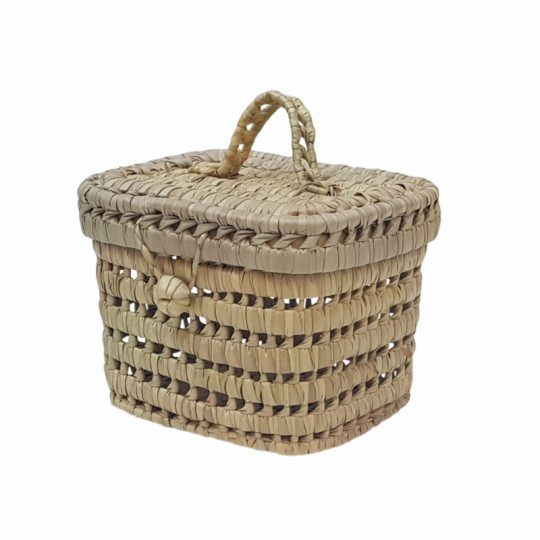 Förvara dina hemligheter i den här praktiska och dekorativakorgen. Korgen är handgjord och tillverkad i 100% Palmblad. Storlek 23x16x16 cm