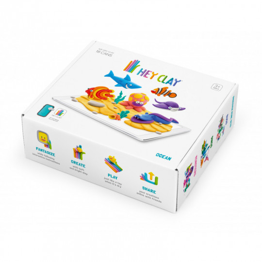 Ett riktigt kul och kreativt set med lufttorkande lera att skapa 6 olika roliga vattenlevande djur av som du sen kan leka med eller dela bilder av med dina vänner. Detta set innehåller material för att kunna skapa: Clownfisk, Diskusfisk, Ål, Bläckfisk, Haj och Stingrocka. Setet innehåller 18 burkar lätt, mjuk, elastisk och färggrann lera som kan ta form med hjälp av en gratis barnvänlig app med interaktiva video-guider som har enkla steg-för-steg instruktioner (på engelska) för hur man skulpterar många olika karaktärer. Du låser upp beskrivningarna för setets alla karaktärer med en kod som finns inuti paketet. Låt dig inspireras av appen och skapa roliga karaktärer av den mjuka och färgstarka leran, låt figurerna lufttorka i 24 timmar så kan du sen leka med dem precis som en leksak eller dela bilder på dina skapelser med dina vänner. Guiden med steg-för-steg instruktionerna visar alla grundläggande tekniker för att skulptera i lera och snart kommer barnen längta efter att skapa sina helt egna figurer. Leran är lufttorkande, klibb-fri, giftfri, innehåller inget vete och har klara, livfulla färger som går att blanda ihop. Tvätta händerna efter användning och undvik att leran får kontakt med mun, ögon, mat eller dryck, vatten, fukt samt eld. Ha leran i lufttäta förpackningar när den inte används så torkar den inte ut. Innehåll: 18 burkar lufttorkande lera (totalt ca 275 g lera i 10 färger) samt ett informationsblad med bilder på alla fiskarna, en länk till där ni kan hämta appen och koden som låser upp appens guider för hur man skapar alla utomjordingar i setet. Från +5 år. (Vuxen tillsyn krävs från +3 år)