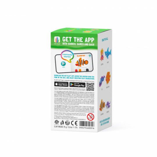 Ett riktigt kul och kreativt set med lufttorkande lera för att skapa en rolig clownfisk av som du sen kan leka med eller dela bilder av med dina vänner. Detta set innehåller 5 burkar lätt, mjuk, elastisk och färggrann lera som kan ta form med hjälp av en gratis barnvänlig app med interaktiva video guider som har enkla steg-för-steg instruktioner (på engelska) för hur man skulpterar olika karaktärer. Du låser upp beskrivningen för clownfisken med en kod som finns inuti paketet. Låt dig inspireras av appen och skapa roliga karaktärer av den mjuka och färgstarka leran, låt figuren lufttorka i 24 timmar så kan du sen leka med den precis som en leksak eller dela bilder på dina skapelser med dina vänner. Guiden med steg-för-steg instruktionen visar alla grundläggande tekniker för att skulptera i lera och snart kommer barnen längta efter att skapa sina helt egna figurer. Leran är lufttorkande, klibb-fri, giftfri, innehåller inget vete och har klara, livfulla färger som går att blanda ihop. Tvätta händerna efter användning och undvik att leran får kontakt med mun, ögon, mat eller dryck, vatten, fukt samt eld. Innehåll: 5 burkar lufttorkande lera (totalt ca 75 g lera i 4 färger) samt ett informationsblad med bilder på fisken, de olika stegen som krävs för att skulptera den, en länk till där ni kan hämta appen och koden som låser upp appens guide för hur man skapar clownfisken. Från +5 år. (Vuxen tillsyn krävs från +3 år)