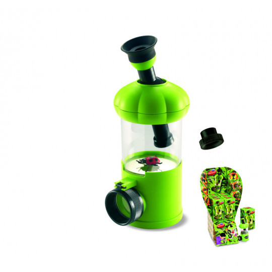 Mikroskop med förstoring 10x och 20x vid studier uppifrån. Horisontellt och underifrån kan man få en förstoring på 3x. Okrossbart material till l spegeldelen. Färg: grön Från 5 år