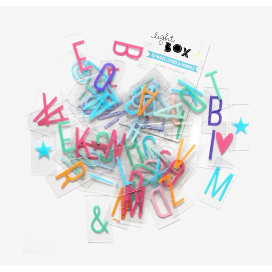 Set innehållande 85 stycken tecken & symboler i pastellfärger. Går att återanvända om och om igen. Passar till Lightbox A4 samt A5.