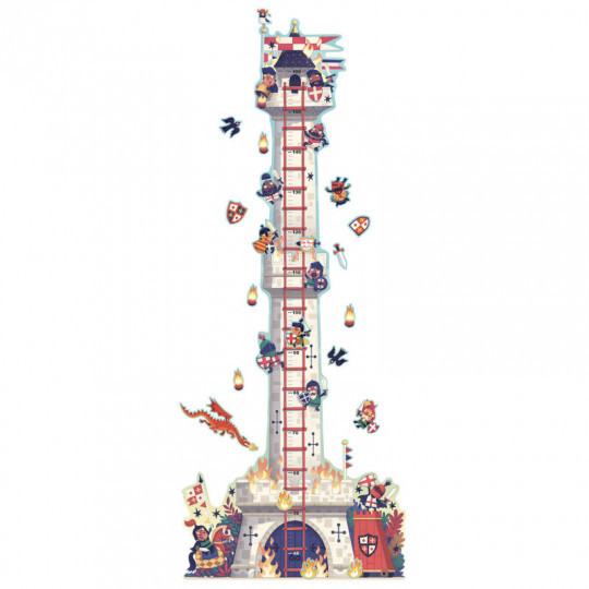 En kul mätsticka i form av ett torn med riddare som försöker anfalla och försvara tornet. Mätstickan har markeringar från 40 till 160 cm, så var lite försiktig när ni sätter upp den och mät upp innan (mät avståndet från 40 cm märket och till nederkanten på mätstickan dra detta mått från 40 cm och markera försiktigt på vägg eller dörr att där ska mätstickan börja). Mätstickan är självhäftande så det är bara att sätta på en lämplig vägg eller dörr. Du får också ett antal mindre klistermärken, både dekorativa och sådana med med plats att skriva t.ex. datum och barnets namn, som du sen kan sätta upp vid barnets aktuella höjd. Innehåll: 40 klistermärken.