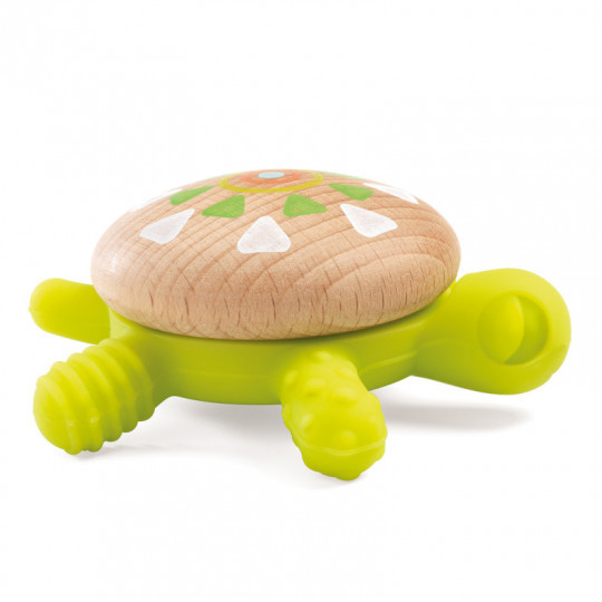 En rolig bitring för de minsta i form av en sköldpadda med olika strukturer på varje ben. Tillverkad i trä och silikon och sparsamt målad med giftfria färger. Storlek: 6,5x7,5x2,8 cm. Från 0 månader.