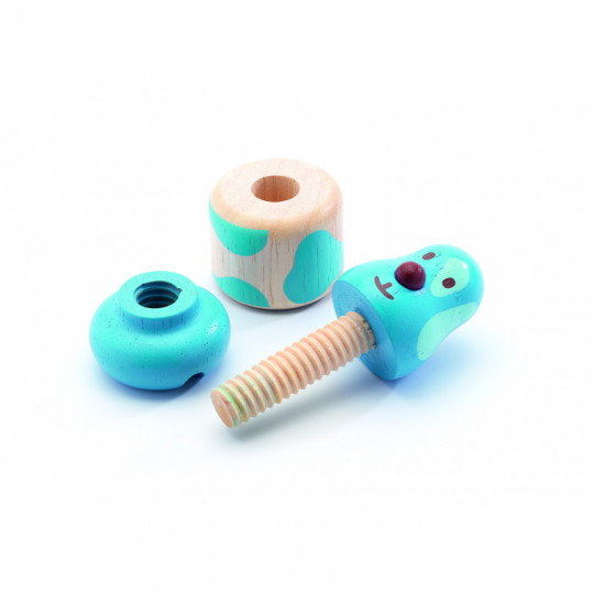 Kul figurer i trä som tränar finmotoriken genom att barnet kan roa sig med att sätta ihop och skruva isär figurerna föreställande en hund, en ko, en katt och en kanin. Innehåller 12 delar. Från 18 månader
