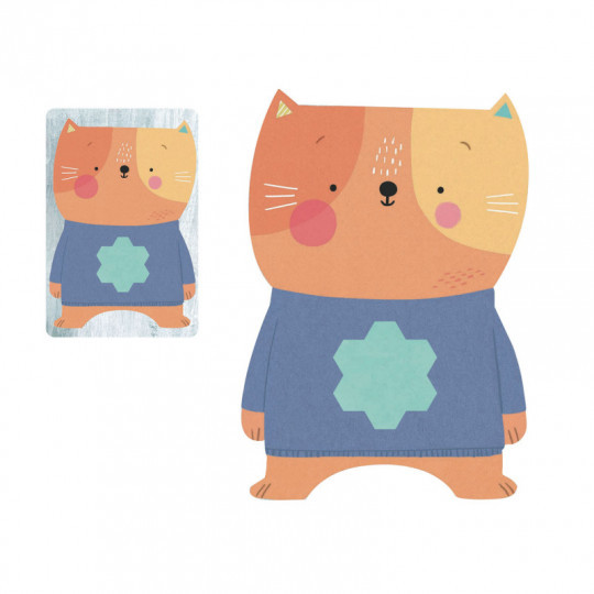 Ett enkelt och lekfullt pedagogiskt spel för att lära sig och använda former. Det är inte lätt att skilja de här katterna från varandra, det är bara bilden på deras tröjor som utmärker varje katt. För att vinna ett kort måste barnet hitta kortet med den form som behövs för att återskapa bilden på utmanings-kortet. Spelet har två olika versioner - ett inlärningsläge och ett snabbhetsläge - så att man kan gå vidare i den takt som passar barnet. I inlärningsläget lär sig barnet först vad de olika formerna heter med hjälp av en vuxen eller liknande och spelar sedan genom att vända upp ett utmanings-kort, namnge formen som syns på kattens tröja samt hitta det kort som visar samma form och lägga det på sin katt så att den ser likadan ut som bilden på utmanings-kortet. Om svaret är rätt får barnet utmanings-kortet, men om svaret är fel säger ni tillsammans vad formen på tröjan heter och letar reda på kortet med denna form. I snabbhets-läget tävlar två spelare om att lyckas bli den första som lägger rätt form-kort på sin katt (väljer man fel kort måste man ge tillbaka ett kort som man vunnit innan) och när det inte finns fler utmanings-kort vinner den spelare som vunnit flest kort hela spelet. Korten är plastbelagda så att de ska hålla för riktigt många spelomgångar och spelets design är utformad för att få barn intresserade av och involverade i spelet. De detaljerade instruktionerna i spelreglerna hjälper den vuxne att förbereda och genomföra aktiviteten på ett enkelt och bra sätt. Varje Eduludo set motsvarar en specifik inlärningsprocess och hjälper barnet att utvecklas på dessa områden. Innehåll: 2 formade katter, 20 kort med former (2 uppsättningar med tio kort i varje), 10 kort med utmaningar (påklädd katt kort), samt spelregler och instruktioner på 10 språk inklusive svenska. Från +2,5 till 5 år. För 1 barn och en vuxen, eller för 2 spelare.
