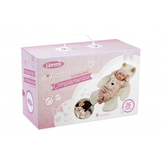 Tillbehör och kläder från spanska Llorens. Passar till babydocka storlek 35 cm.