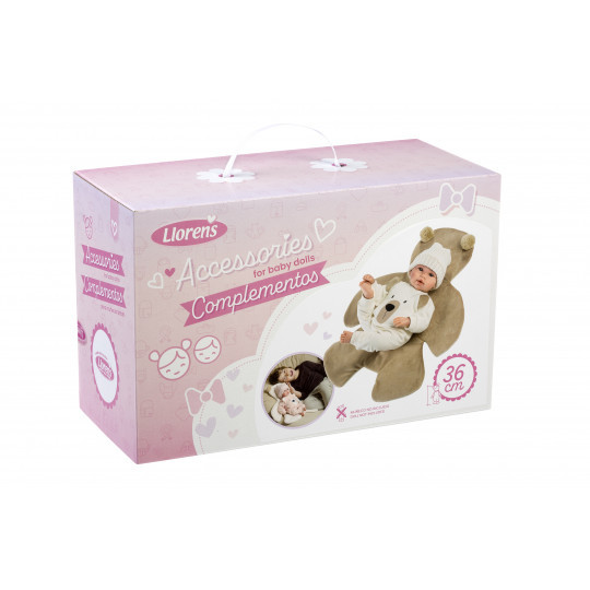 Tillbehör och kläder från spanska Llorens. Passar till babydocka storlek 35 cm.
