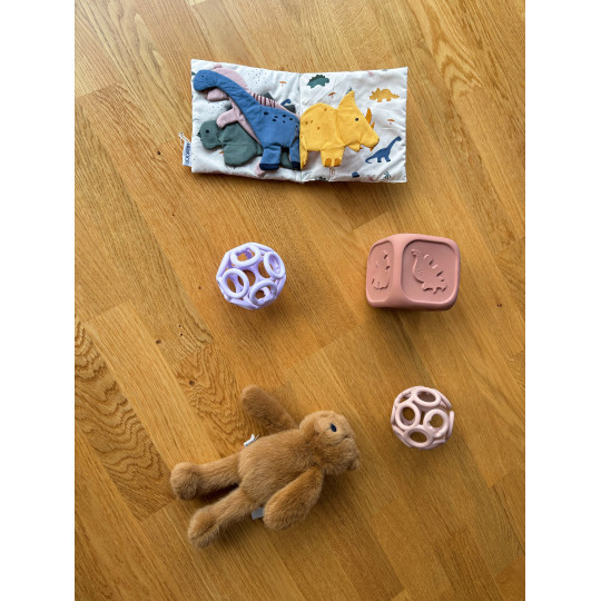 Leksakstärningar i naturgummilatex med olika spännande motiv präglade på varje sida. Kasta tärningen och ditt barn kommer att möta en cool dinosaurie eller en söt björn.