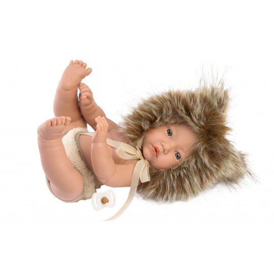 Leo är en liten babydocka med rörliga leder. Han är klädd i fluffiga kortbyxor och en mössa som är som en lejonman!