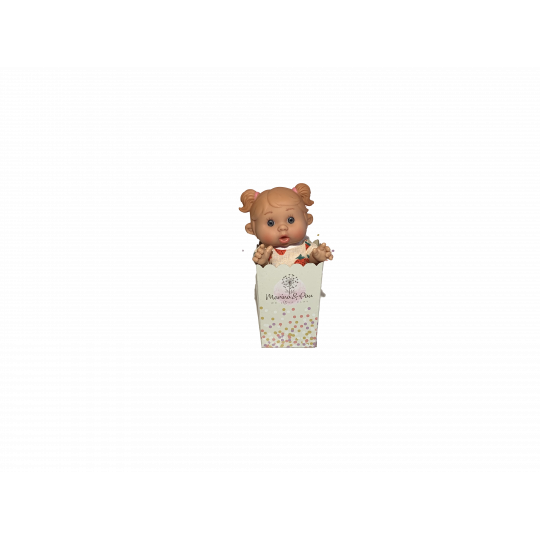 21 cm hel vinyl docka med fräcka uttryck, knubbiga armar och ben samt format hår! Kommer med avtagbara kläder och napp. Ben, armar och huvud är rörliga runt kroppen.