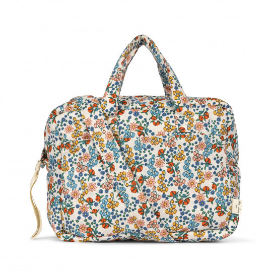 Fin och praktisk skötväska till dockans alla saker! Söt med blommor och fjärilar som motiv. Väskan stängs med blixtlås och har en stor ficka på utsidan. Justerbar axelrem som gör att den passar alla.
