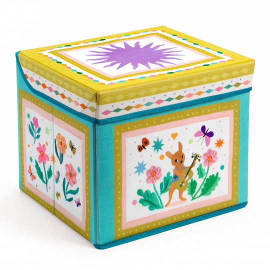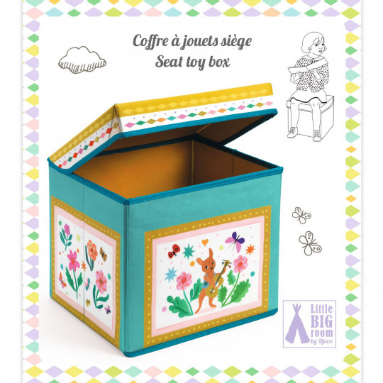 En snygg och charmig leksakslåda som också kan användas som pall, dekorerad med fina illustrationer av bland annat blommor och små djur. Denna dekorativa förvaringslösning är ett perfekt hjälpmedel för att hålla ordning på leksakerna, och tack vare sin robusta trästomme kan lådan dessutom användas som sittplats för barn upp till 30 kg, vilket motsvarar ungefär 9 års ålder. Det stilfulla överdraget matchar designen på lektältet Caravan. Lådan levereras i ett platt paket och är enkel att montera eller fälla ihop efter behov.