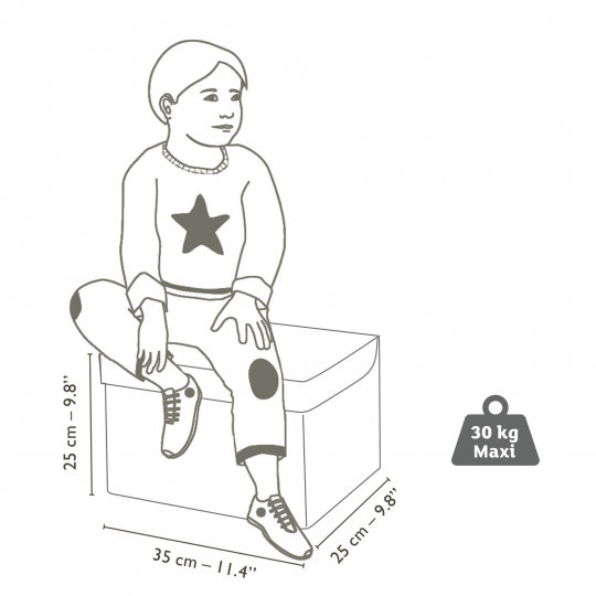 En mångsidig leksakslåda som också kan användas som pall eller en liten vägbana för leksaksbilar. Denna underbara och dekorativa förvaringslösning är ett perfekt hjälpmedel för att hålla ordning på leksakerna, och tack vare sin robusta trästomme kan lådan dessutom användas som sittplats för barn upp till 30 kg, vilket motsvarar ungefär 9 års ålder. Det stilfullt designade överdraget har en liten vägbana för diverse leksaksfordon på ovansidan av locket, medan sidorna pryds av lekfulla illustrationer av en livlig och vältrafikerad väg. Lådan levereras i ett platt paket och är enkel att montera eller fälla ihop efter behov.
