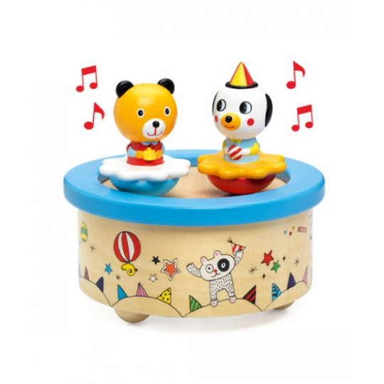 De två söta figurerna dansar lekfullt på toppen av denna färgglada speldosa samtidigt som Shuberts vaggvisa Lulaby spelas. De två figurerna sitter fast med magnet och lätt tas av och åter sättas på plats.
